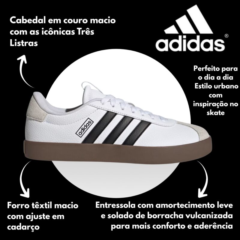 Em até 6x de R$ 66,67 sem juros À vistaR$ 319,99no PixTênis Adidas VL Court 3.0 Branco/Preto/Marrom JK3144