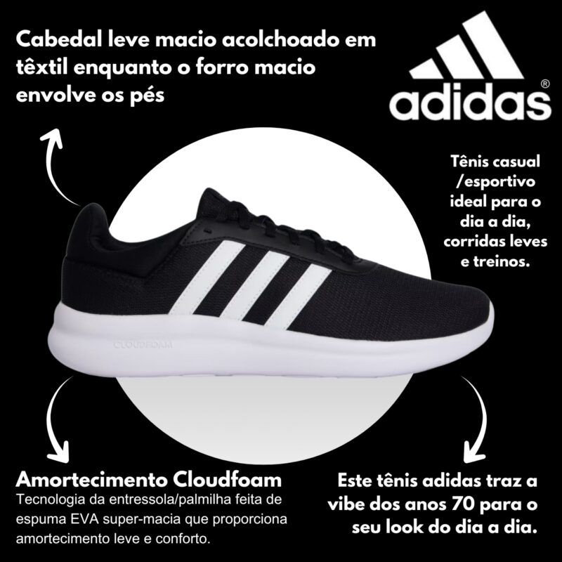 Em até 6x de R$ 66,67 sem juros À vistaR$ 319,99no PixTênis Adidas Lite Racer 4.0 Preto/Branco JJ7367