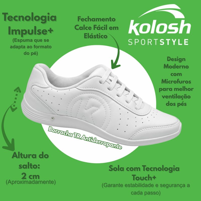 Em até 3x de R$ 33,33 sem juros À vistaR$ 79,99no PixTênis Feminino Kolosh Casual Confortável Elástico C3197