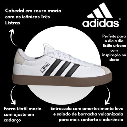 Em até 6x de R$ 58,33 sem juros À vistaR$ 279,99no PixTênis Adidas VL Court 3.0 Branco/Preto/Marrom JK3144