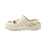 Fabricado em EVA leve e resistente, é fácil de limpar e possui solado antiderrapante que garante segurança ao caminhar. A tira traseira ajustável permite usar tanto como chinelo quanto como babuche com calce firme, oferecendo versatilidade para todas as ocasiões.
