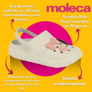 O Chinelo Babuche Moleca Botons 5832101 é leve, confortável e versátil, com design ventilado, tira ajustável e solado antiderrapante que garantem segurança e bem-estar no dia a dia.