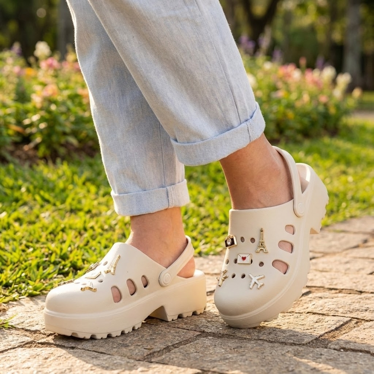 Seu design moderno com solado plataforma traz um visual fashion que combina com looks descontraídos, casuais ou até mais ousados. A tira traseira reversível oferece total versatilidade: pode ser usada como sandália ou tamanco, garantindo praticidade para acompanhar qualquer ocasião. Confeccionada em material superleve, macio e resistente, proporciona passos suaves mesmo após horas de uso.