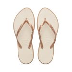 As Havaianas Slim Point trazem uma proposta inovadora para a linha feminina, unindo conforto e modernidade em um design sofisticado. Com o bico levemente pontudo, este modelo acompanha a tendência atual e garante um toque diferenciado aos pés, perfeito para quem gosta de unir praticidade e estilo no dia a dia. As laterais coloridas em contraste com os tons pastel da sola e as tiras finas com logo metálico reforçam a estética contemporânea e elegante, ideal para diferentes ocasiões, desde passeios casuais até encontros descontraídos.