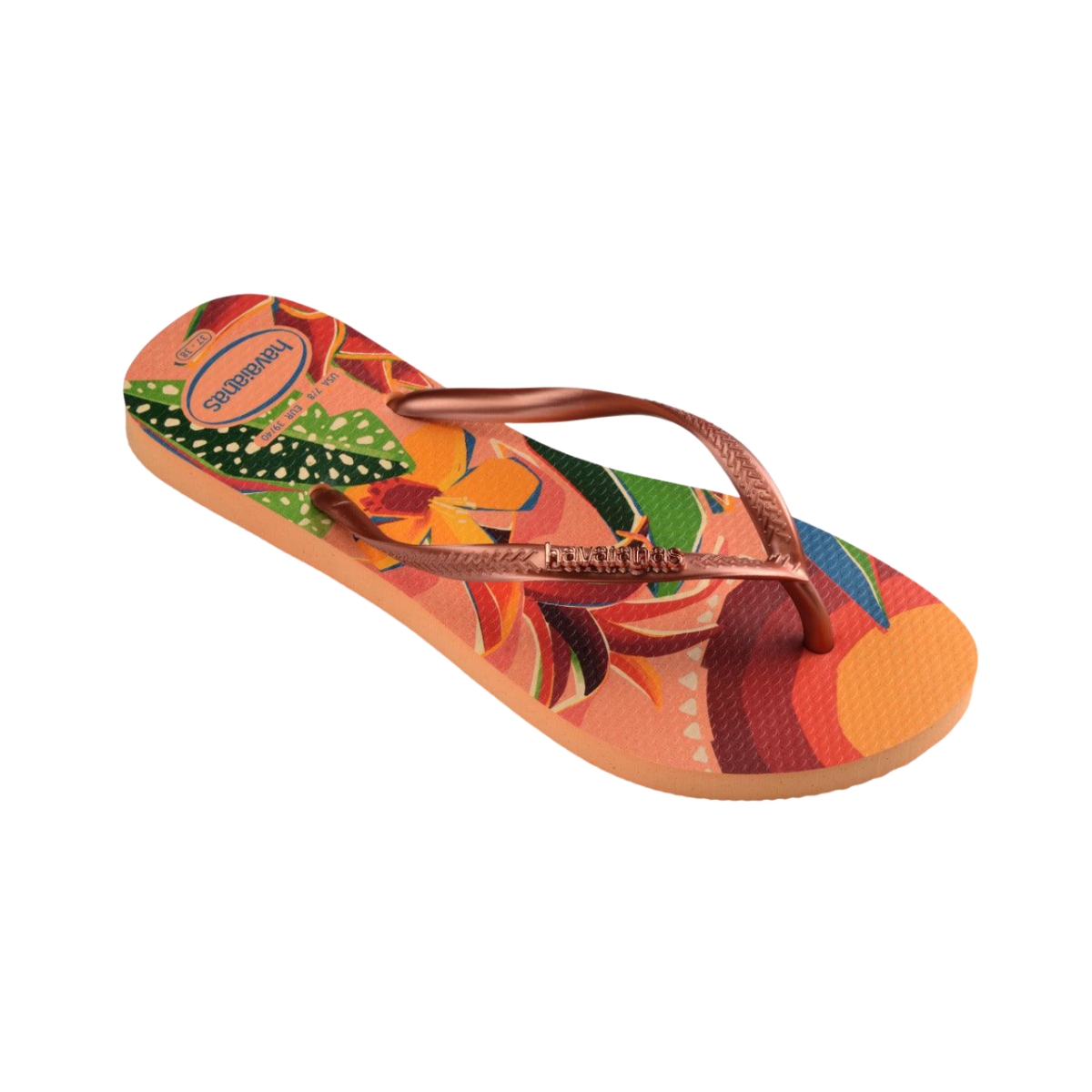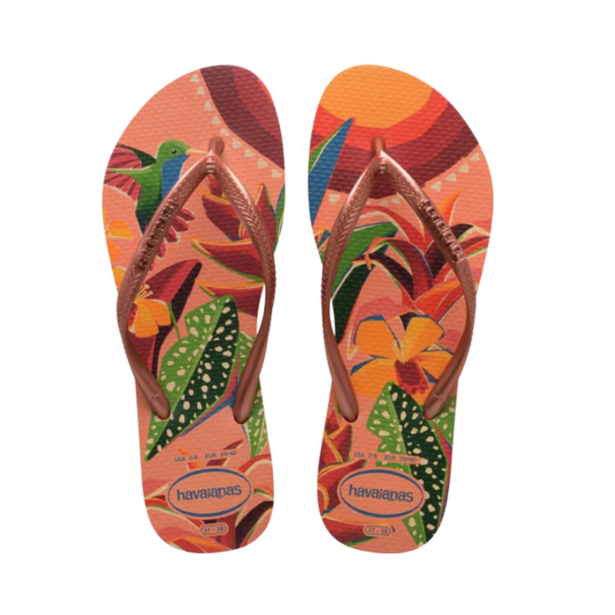 Chinelo Feminino Havaianas Slim Tropical Original Flores Floresta Praia Confortável Original 4122111