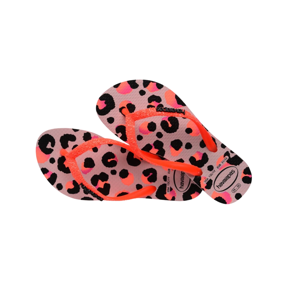 As Havaianas Kids Slim Glitter II são puro charme e estilo! Criadas especialmente para as crianças fashionistas, esse modelo combina o brilho encantador do glitter holográfico nas tiras com estampas coloridas em animal print, deixando os pequenos cheios de personalidade e diversão.