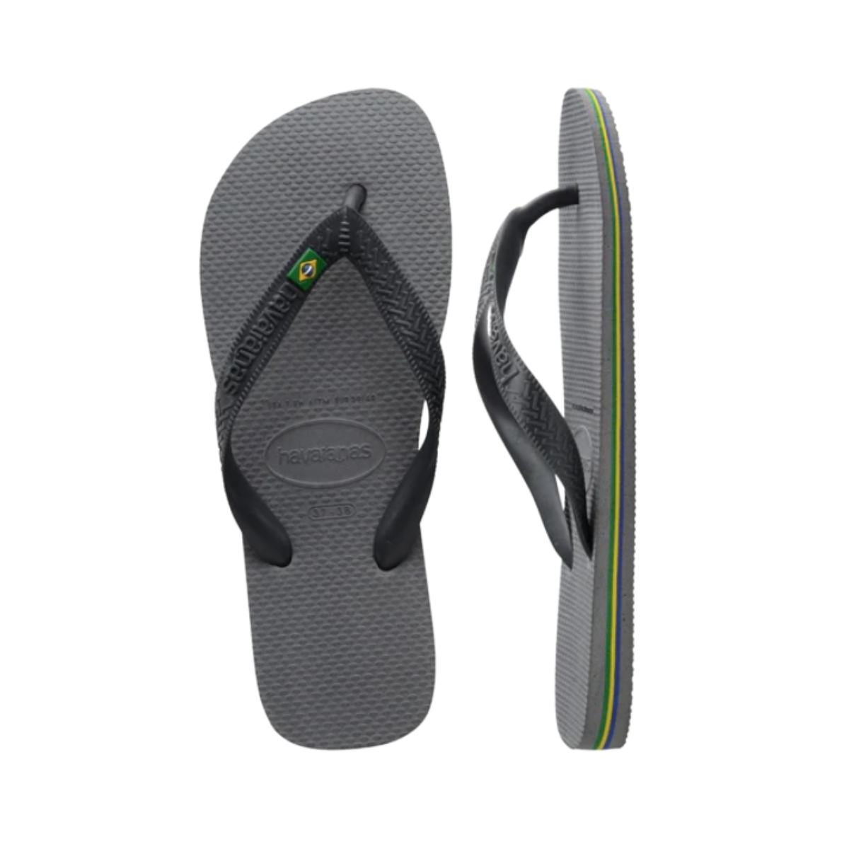 O chinelo Havaianas Brasil Tradicional é um ícone mundial da cultura brasileira, com tiras estampadas com a bandeira do Brasil em alto-relevo. Confeccionado em borracha de alta qualidade com palmilha texturizada e solado com frisos antiderrapantes para conforto e segurança. Versátil e durável, ideal para praia, piscina e uso casual no dia a dia.