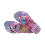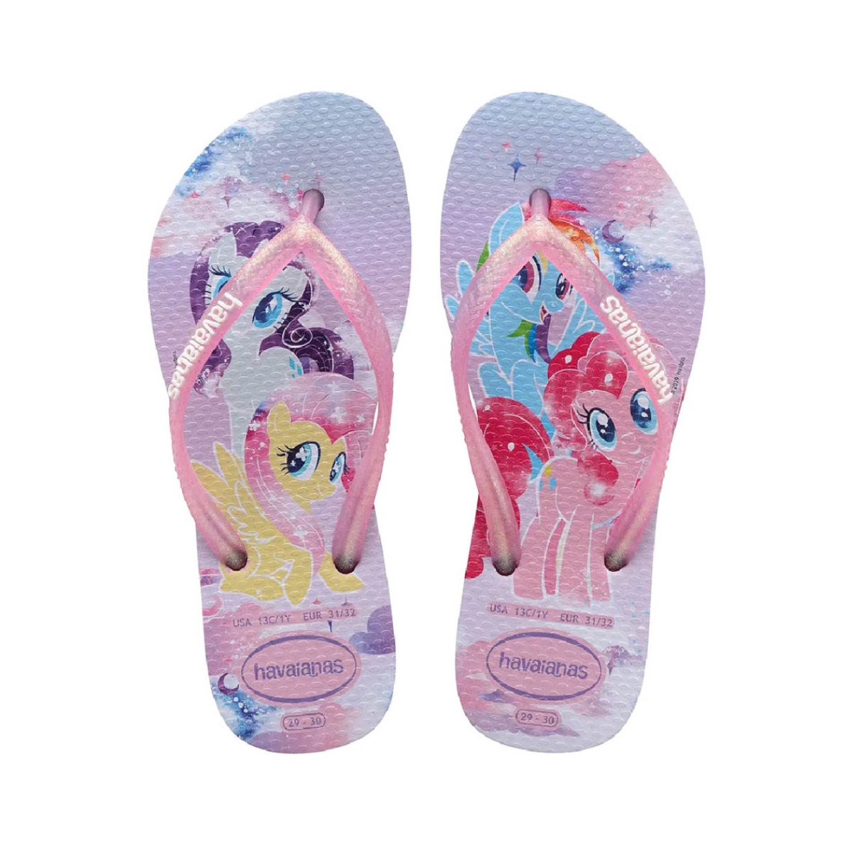 O Chinelo Havaianas Kids Slim My Little Pony é perfeito para meninas que adoram cores e personagens encantadores. Com tiras delicadas e metalizadas, estampa divertida e solado em borracha antiderrapante, oferece conforto, leveza e muito estilo para o dia a dia.