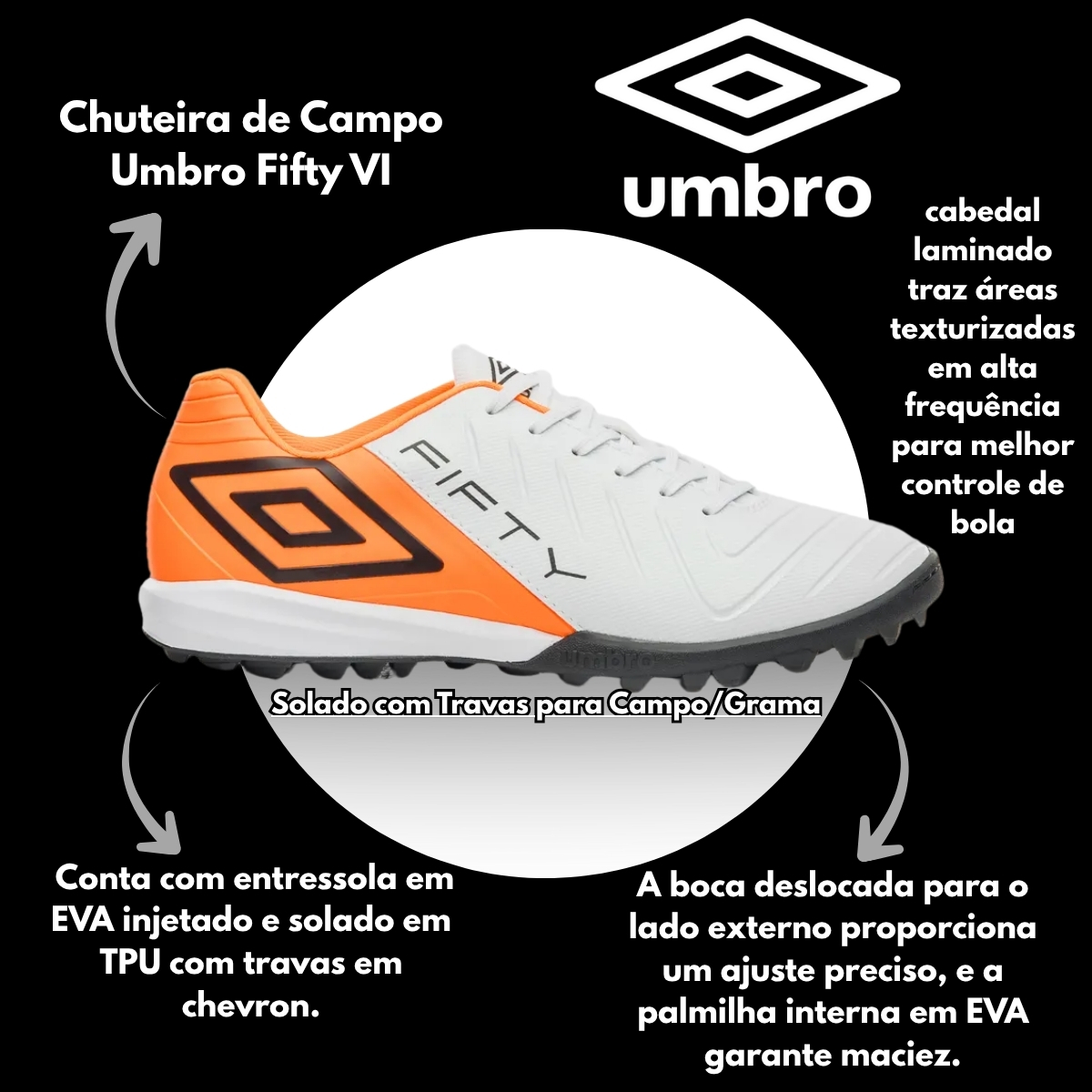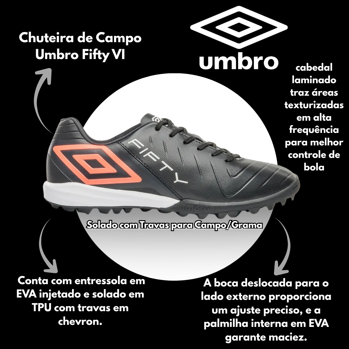 Em até 2x de R$ 35,00 sem juros À vistaR$ 55,99no PixChuteira Masculino Society Umbro Fifty VI U01FB00347