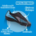 Projetada para acompanhar o ritmo dos pequenos atletas, a chuteira da Molekinho une durabilidade, flexibilidade e conforto, sendo ideal tanto para treinos quanto para momentos de lazer. O forro interno têxtil macio e a palmilha em PU proporcionam amortecimento e bem-estar, mesmo após longos períodos de uso.