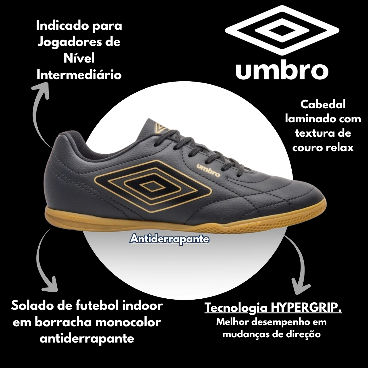 Itens inclusos na compra: Uma Chuteira Futsal Umbro Class Footballer, conforme anunciado, enviada na caixa original do fabricante.