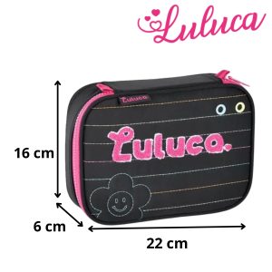 Acabamento: Cor vibrante com detalhes temáticos da Luluca