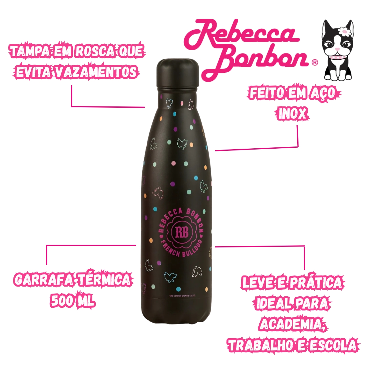 Garrafa Térmica 500ml Rebecca Bonbon Squeeze Aço Inox Inoxidavel Com Tampa Estampada Escola Academia RB1007
