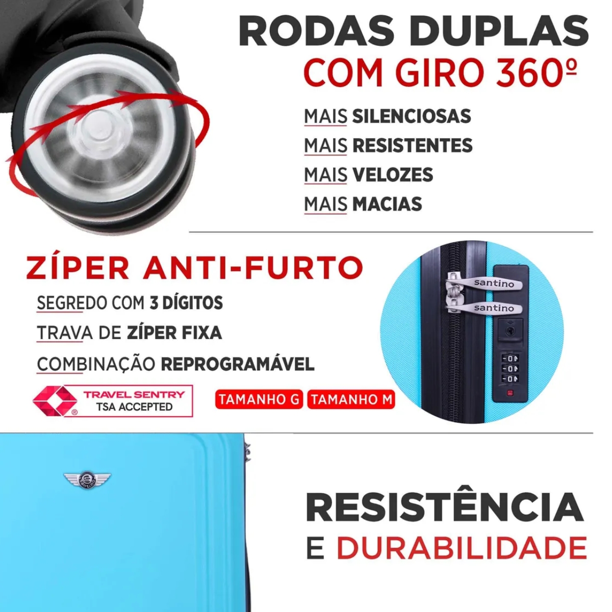Itens inclusos na compra: Mala de Viagem Panteão Santino M SDV502M, enviada na embalagem original do fabricante.