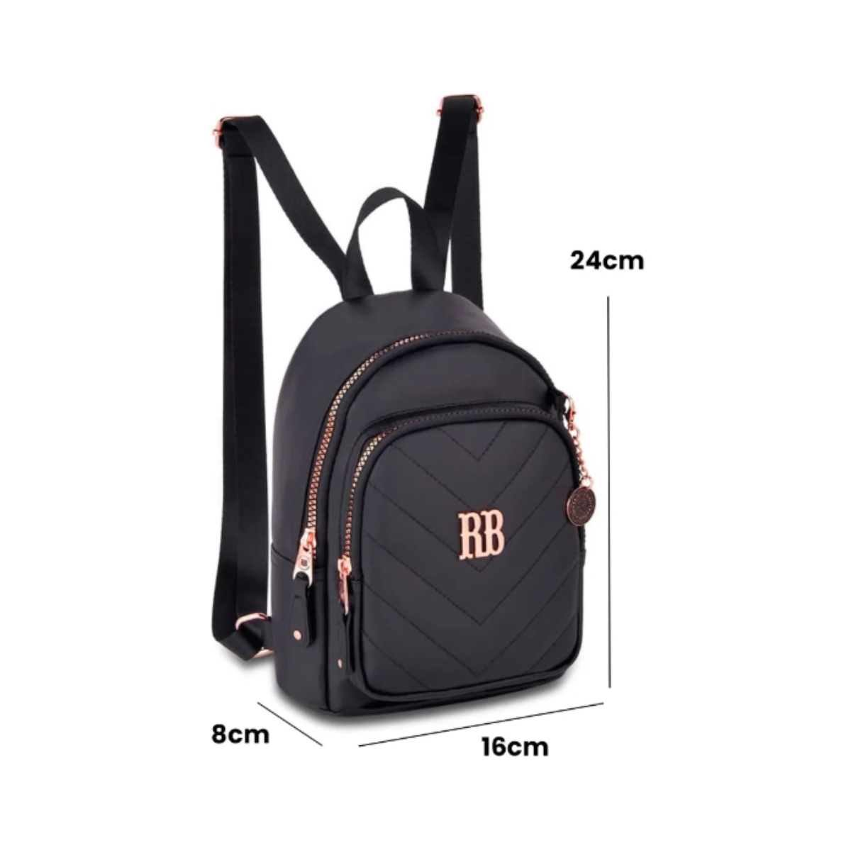 Dimensões da mini mochila: 24 cm (altura) x 16 cm (largura) x 8 cm (profundidade)