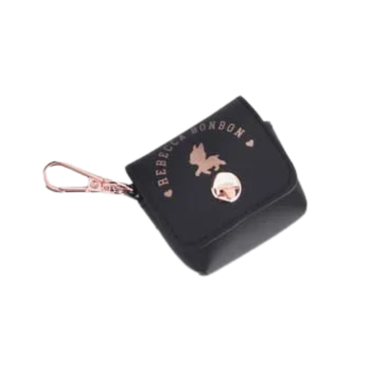 Kit exclusivo com mini mochila, porta fone e chaveiro com suporte para celular, todos com design sofisticado e detalhes em rose gold. Ideal para quem busca estilo, praticidade e um presente especial da linha Rebecca Bonbon.