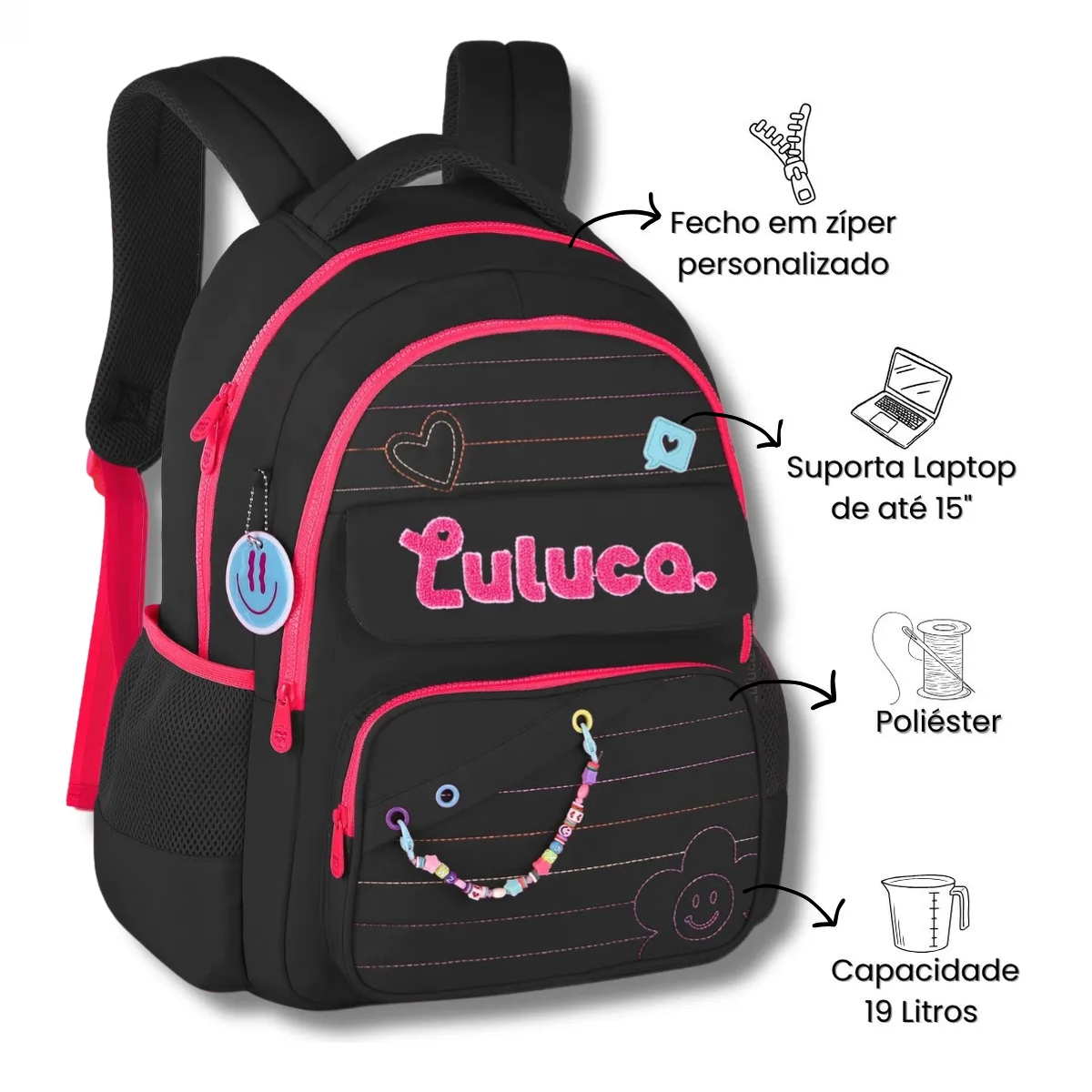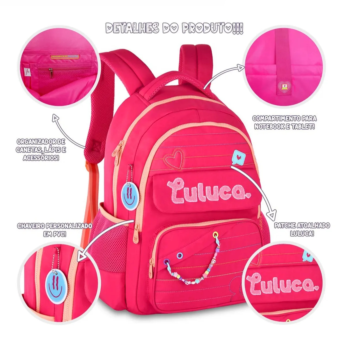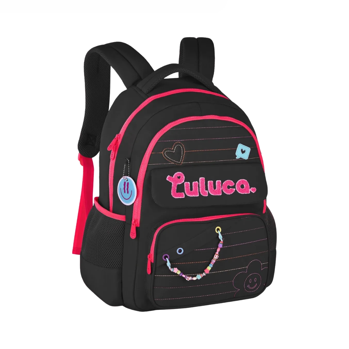A Mochila Escolar Feminina Luluca LU24610 é a escolha certa para meninas cheias de estilo e energia. Com design vibrante inspirado na influenciadora Luluca, une visual encantador e funcionalidade: compartimento espaçoso para materiais escolares, espaço para notebook, alças ajustáveis e acolchoadas e fechamento reforçado para maior segurança. Em poliéster resistente, é perfeita para escola, cursos e passeios.