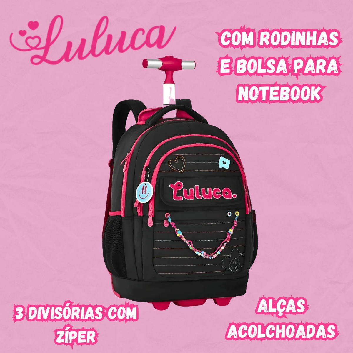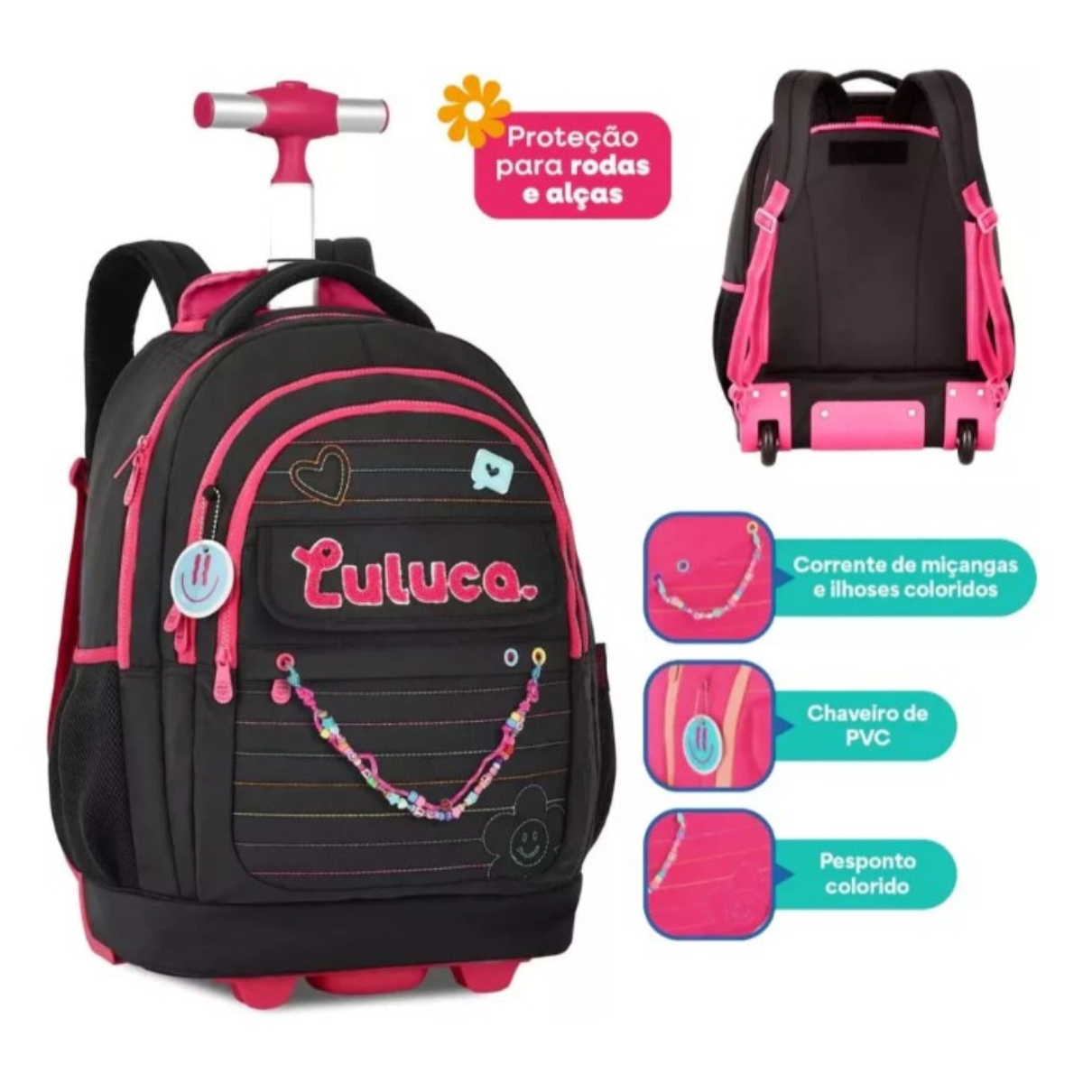 A Mochila de Rodas Luluca Juvenil Clio Style LU24606 foi desenvolvida especialmente para meninas que amam estilo, personalidade e funcionalidade. Inspirada na influenciadora Luluca, ela traz um visual moderno e encantador, com detalhes coloridos e acabamento caprichado que deixam qualquer look escolar ainda mais fashion.