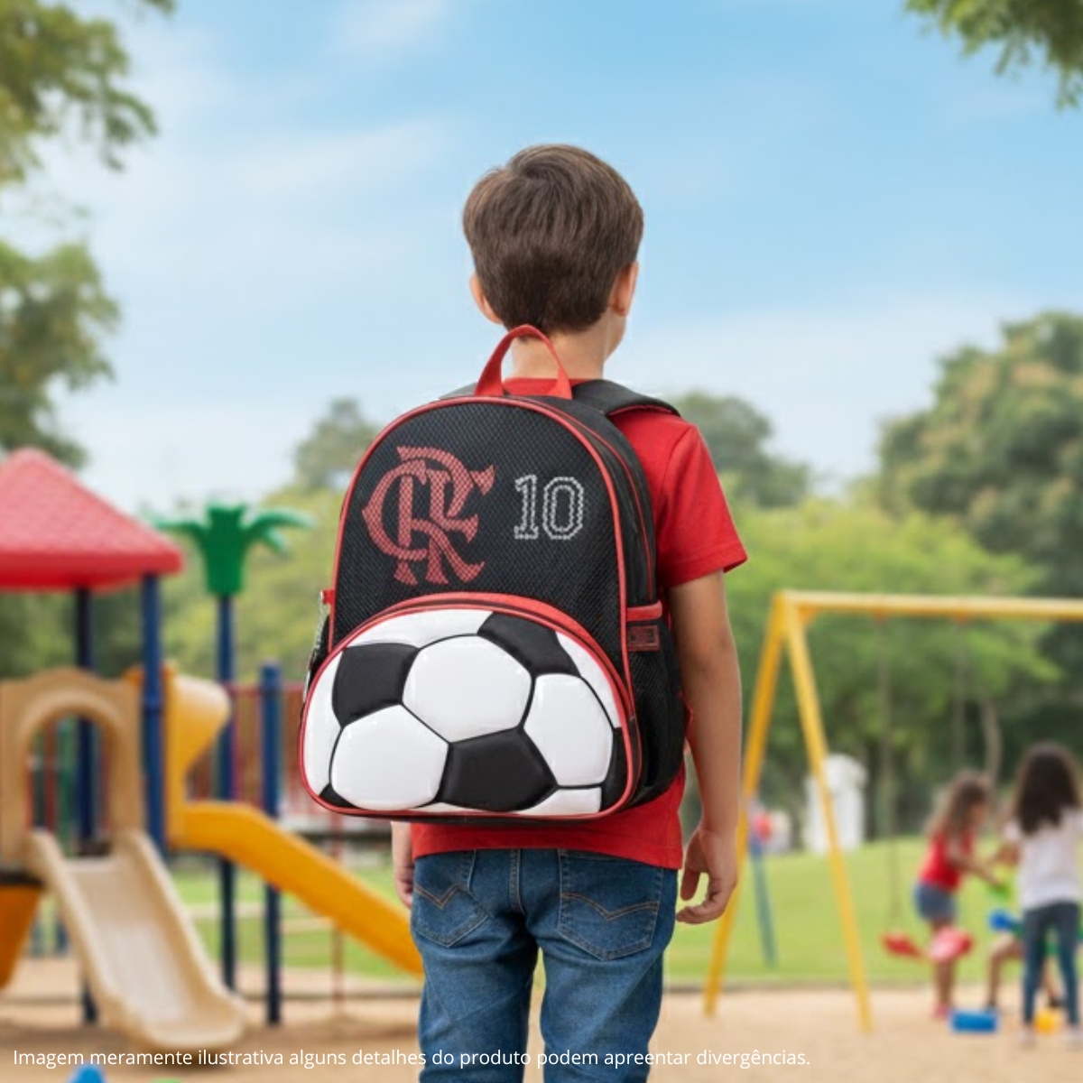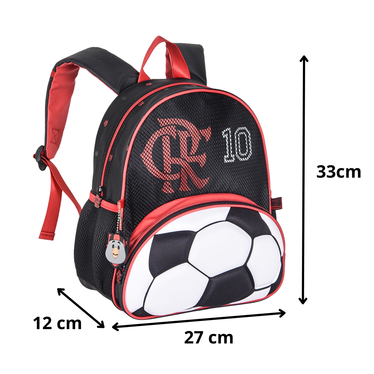 A Mochila Infantil Flamengo Clio Style FLA24618D é perfeita para os pequenos rubro-negros levarem o amor pelo Mengão a todo lugar. Confeccionada em lona resinada resistente, traz bola em EVA conformada, silk sob telado, chaveiro do mascote Binho e puxadores temáticos. Com bolso frontal, bolsos laterais telados e alça reforçada, une estilo e praticidade no dia a dia. Compacta, leve e ideal para escola e passeios.