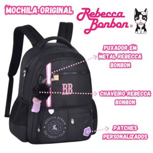 A Bulldog mais charmosa de Paris está de volta ao Brasil na coleção exclusiva Rebecca Bonbon by Clio Style, traduzindo estilo, personalidade e funcionalidade em uma mochila de carrinho desenvolvida para acompanhar a rotina de crianças, adolescentes e jovens estudantes com muito brilho e elegância. Confeccionada em poliéster Crinkle com matelassê e costura reforçada, o modelo une visual delicado e contemporâneo com estrutura resistente, durável e reforçada, ideal para o uso diário escolar e momentos casuais. Seu sistema de carrinho com rodas em silicone permite transporte ágil e confortável, enquanto a haste ajustável (até 28 cm e 48 cm) oferece praticidade extra conforme a altura do usuário. Os detalhes encantadores como o chaveiro em formato de coração, puxadores personalizados em metal, zíper e logo metalizados, além dos bolsos telados laterais porta-garrafinha — elevam o design e reforçam a autenticidade da marca. Com múltiplos compartimentos externos e internos, incluindo espaço dedicado para notebook, o modelo entrega organização inteligente sem abrir mão do charme visual que só a Rebecca Bonbon proporciona. Cuidados e uso: desenvolvida para todos os tipos de superfícies society escolares (grama sintética não aplicável neste item), deve ser armazenada em local seco e arejado, evitando excesso de peso para preservar costuras e puxadores.