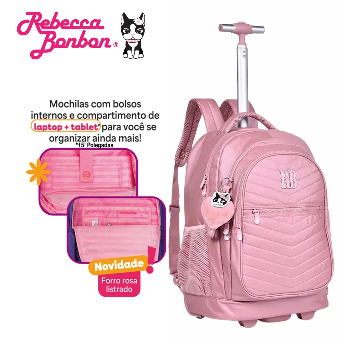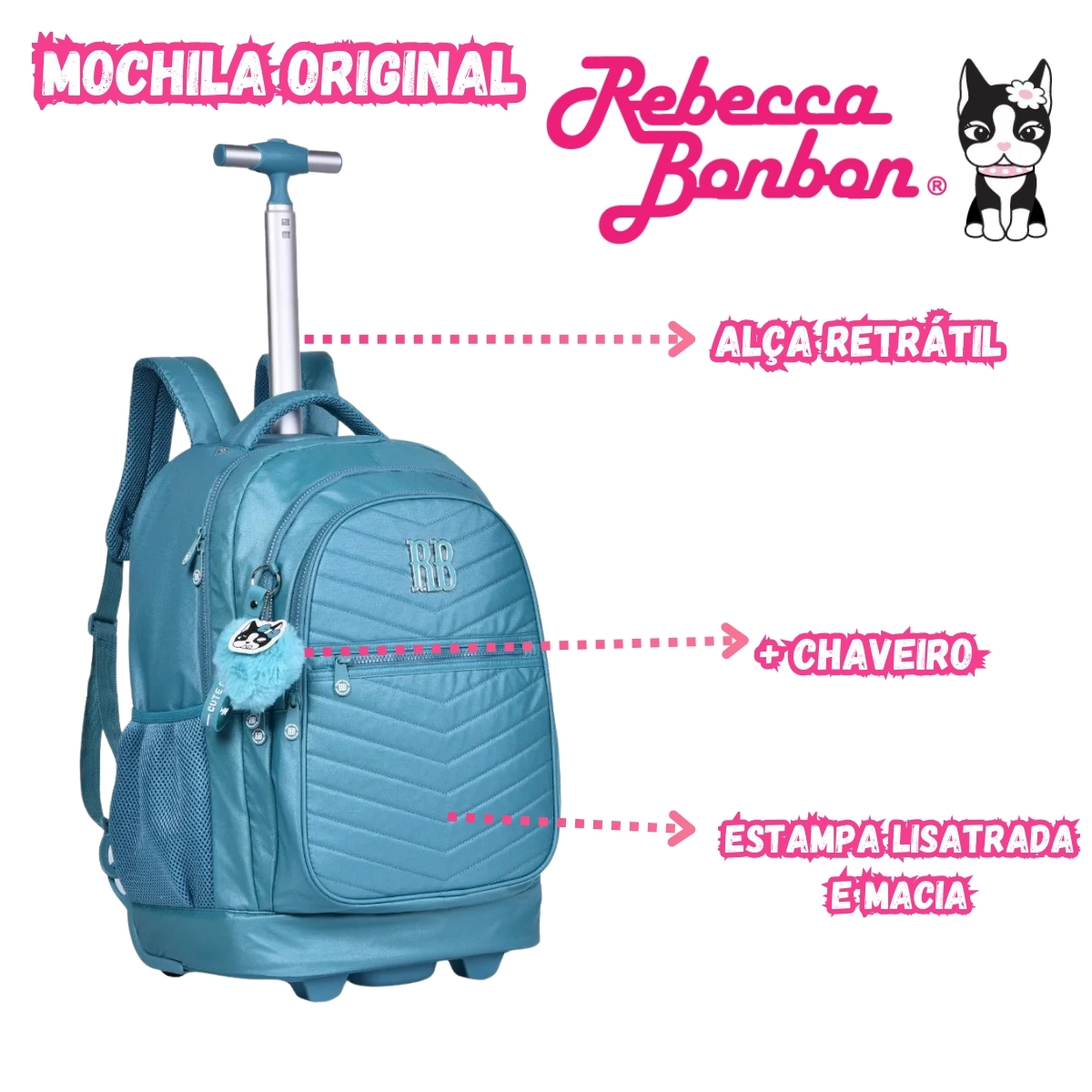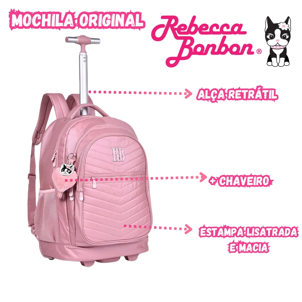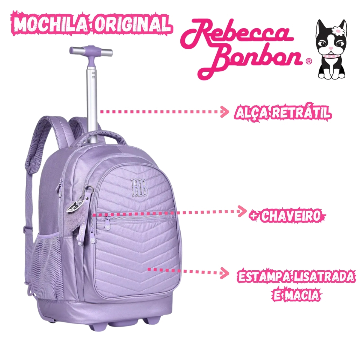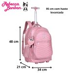 Mochila Rebecca Bonbon Meninas Carrinho com Rodinhas Escolar Reforçada Espaçosa Original RB24052