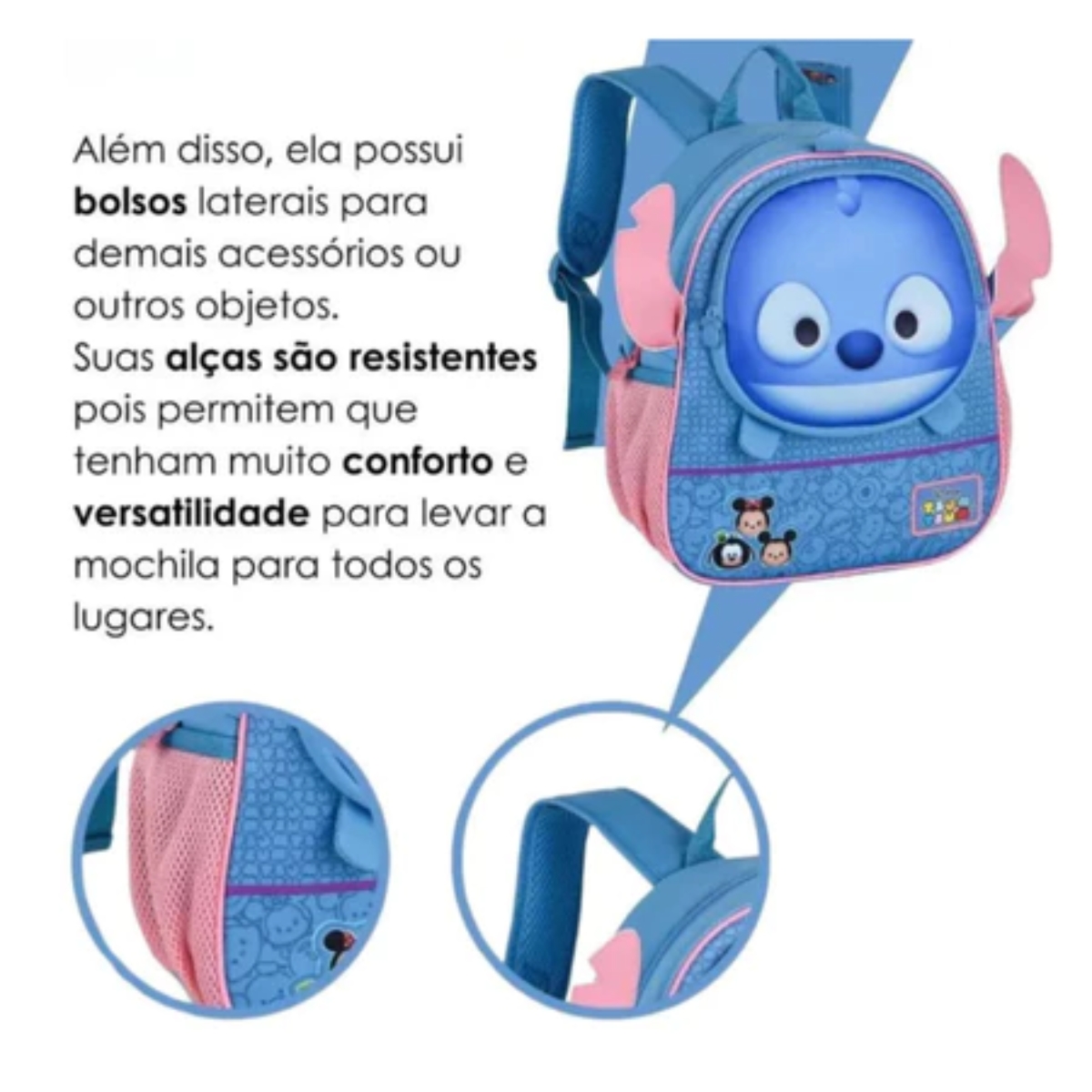 Itens inclusos na compra: Mochila Stitch Tsum Tsum Disney (conforme anunciado), enviada na caixa original do fabricante.