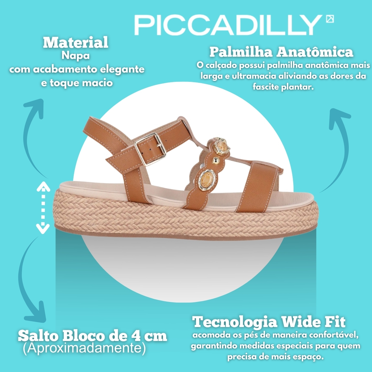 Itens inclusos na compra: Sandália Piccadilly Sol Anabela Médio, conforme anunciado, enviada na caixa original do fabricante.