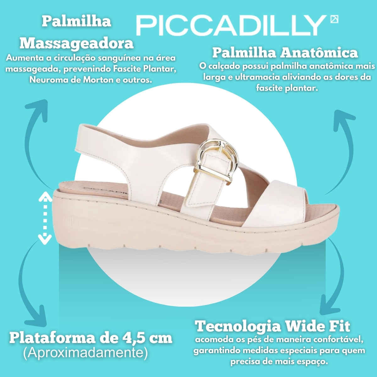 Sandália Feminina Piccadilly Palmilha Massageadora Removível 568077