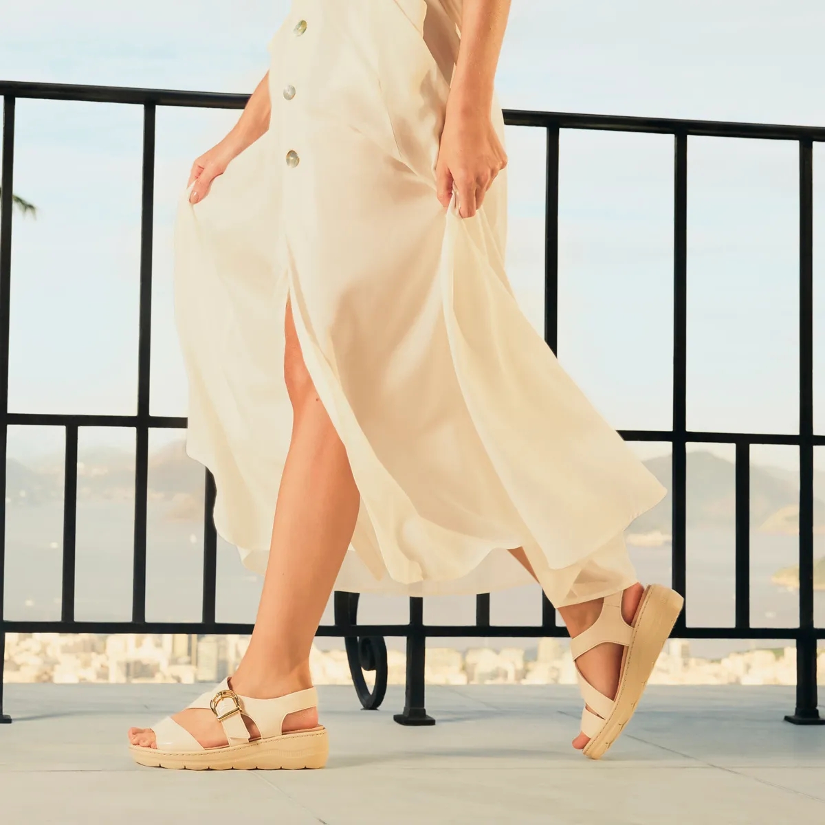 Confeccionado em material sintético com acabamento em verniz amassado, o tamanco entrega sofisticação sem abrir mão da praticidade. O salto anabela médio proporciona estabilidade e elegância, enquanto o solado leve contribui para uma pisada mais macia e segura. Um calçado versátil, pensado para cuidar dos seus pés e complementar seus looks com muito estilo.