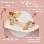A Sandália Papete Modare 7198.101 Ultra Conforto Ortopédica Massageadora foi desenvolvida para mulheres que priorizam conforto sem abrir mão do estilo. Com design liso e moderno, o cabedal em napa floather sintética com acabamento nature/metalizado garante visual sofisticado e versátil para compor looks casuais do dia a dia, passeios, viagens e até produções mais elaboradas.