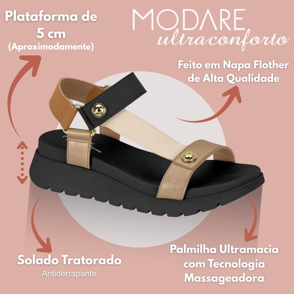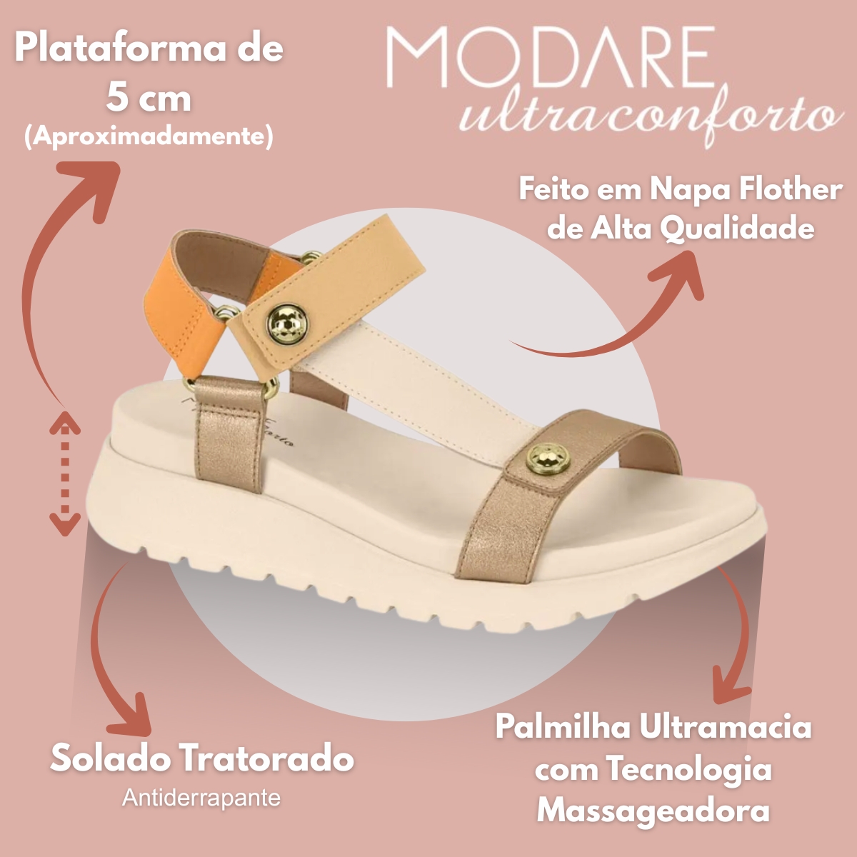 Categoria: Sandália feminina casual com benefícios ortopédicos e palmilha massageadora