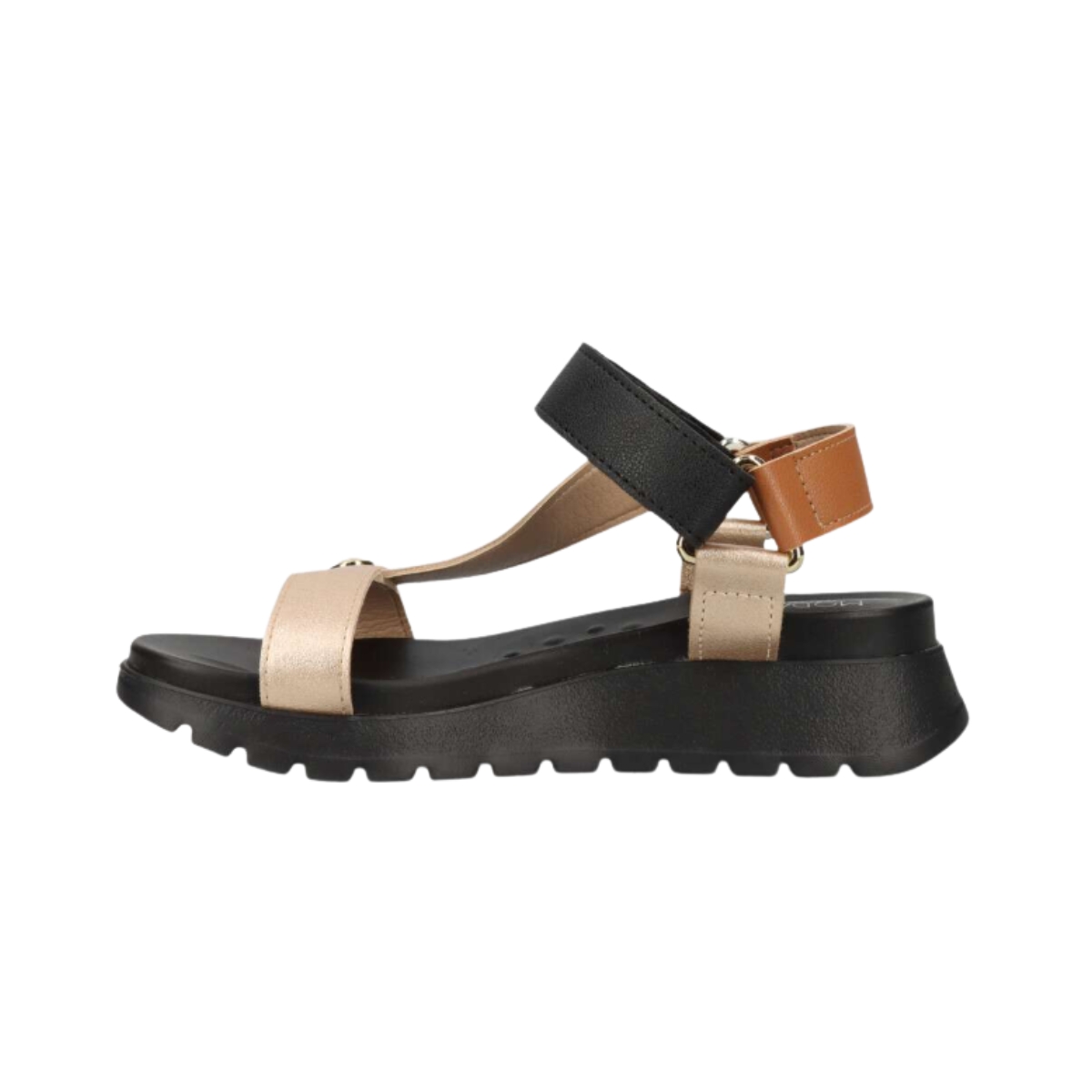 Material do sapato (cabedal): Napa floather sintética – acabamento nature/metalizado
