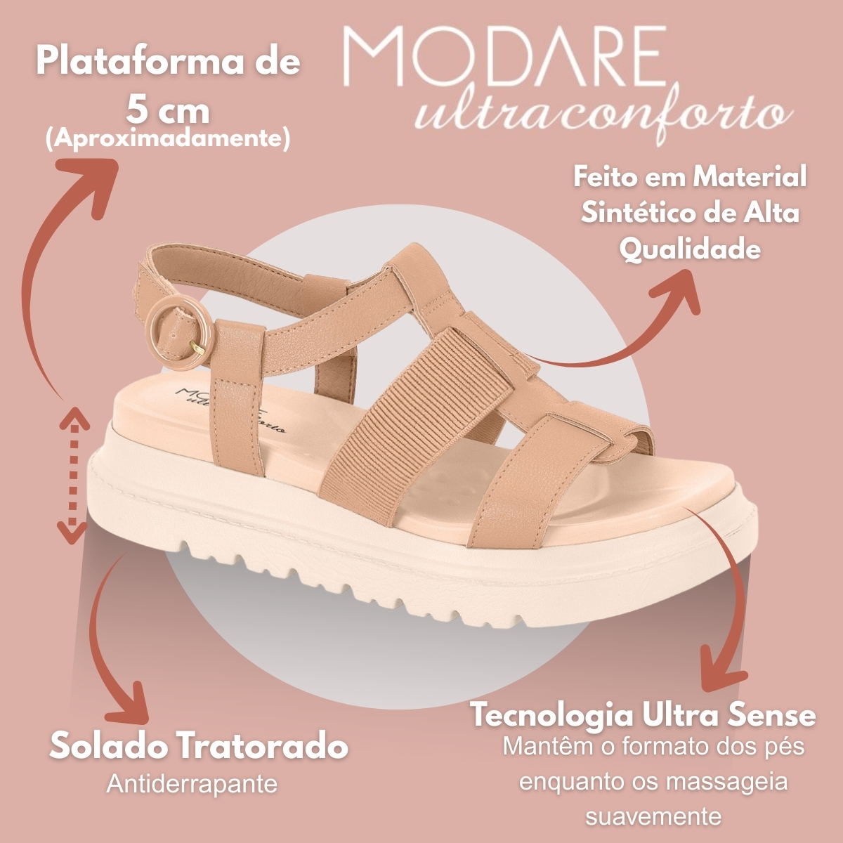 Itens inclusos na compra: Sandália Modare Ultraconforto Ultra Sense 7200101, conforme anunciado, enviada na caixa original do fabricante.
