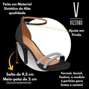 Em até 5x de R$ 34,00 sem juros À vistaR$ 135,99no PixSandália Vizzano Salto Fino Strass 62101037