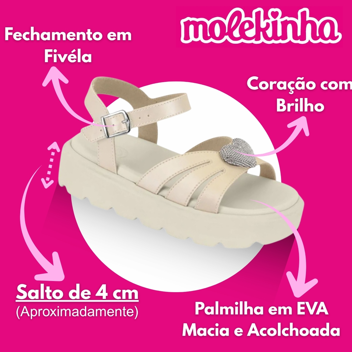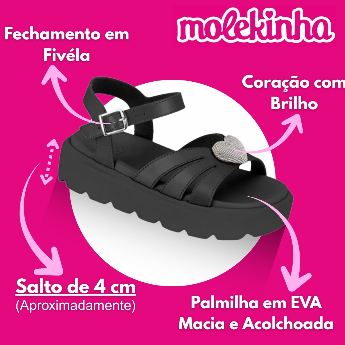 Sandália Papete Molekinha Fivéla Coração Com Brilho 2362106