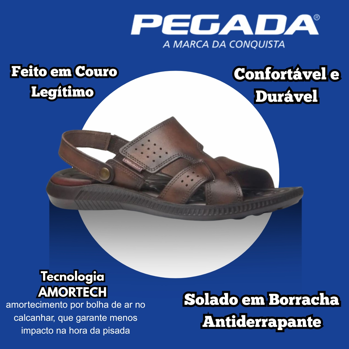 Sandália Masculina Pegada Casual Amortech Couro Legítimo Durável Resistente Dia a Dia 133156