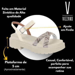 Em até 5x de R$ 34,00 sem juros À vistaR$ 135,99no PixSandália Vizzano Plataforma Tiras Strass 6499114