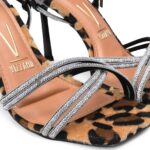 Modelo: Sandália Feminina Salto Alto Fino 6516.408 – Estampa Onça com Strass