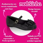 Seu design inspirado no universo das mini fashionistas combina charme, praticidade e conforto. O laço frontal decorativo traz um toque de delicadeza e feminilidade, enquanto a tira com fivela ajustável proporciona melhor ajuste aos pés, garantindo segurança e firmeza ao caminhar. A sapatilha possui forro interno em tecido macio e palmilha espumada, oferecendo conforto durante o uso prolongado, seja na escola, passeios, festas ou momentos especiais. O bico redondo proporciona mais espaço e conforto para os pés, respeitando o movimento natural durante as atividades do dia a dia.