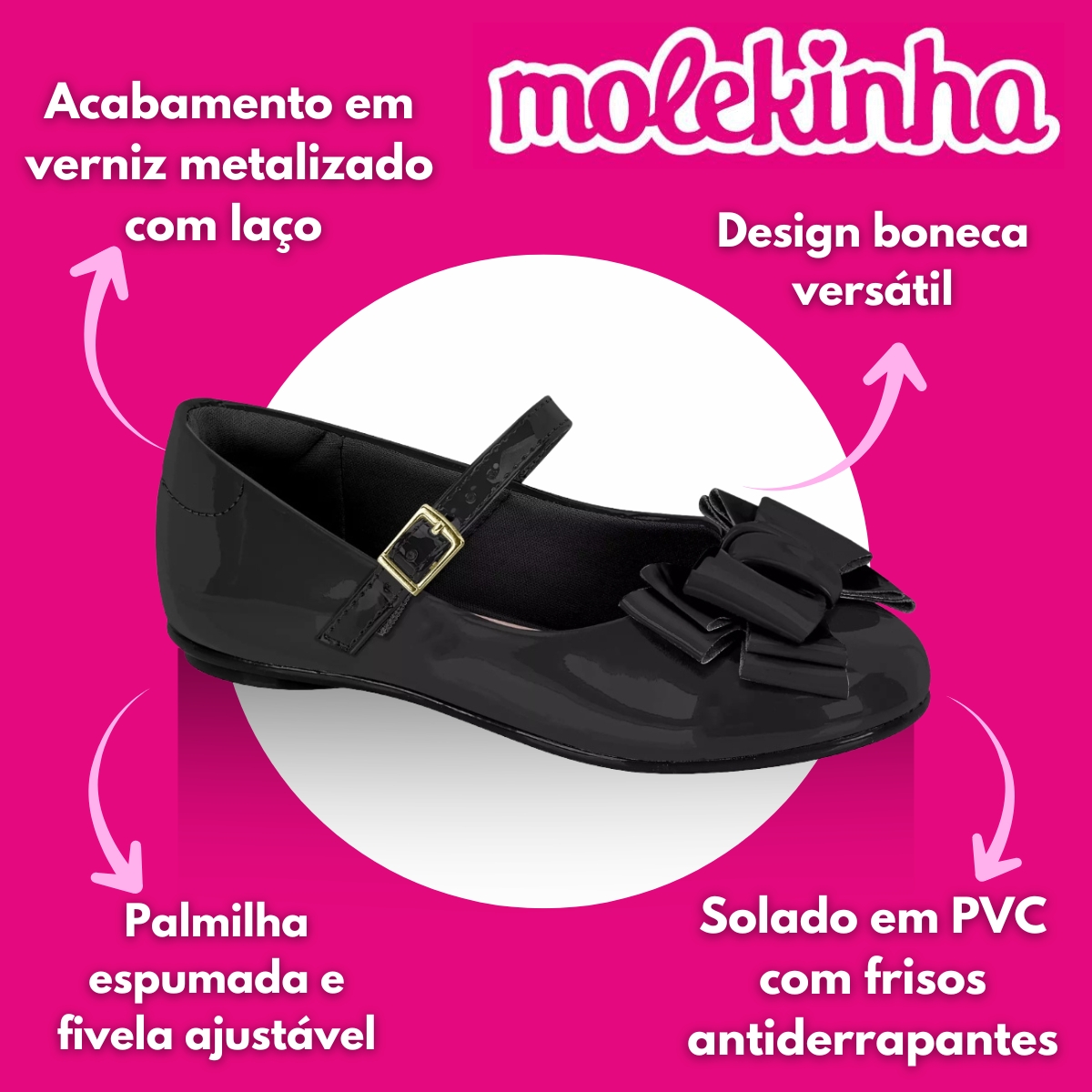 Em até 4x de R$ 32,50 sem juros À vistaR$ 103,99no PixSapatilha Infantil Molekinha Preto Verniz 20831122