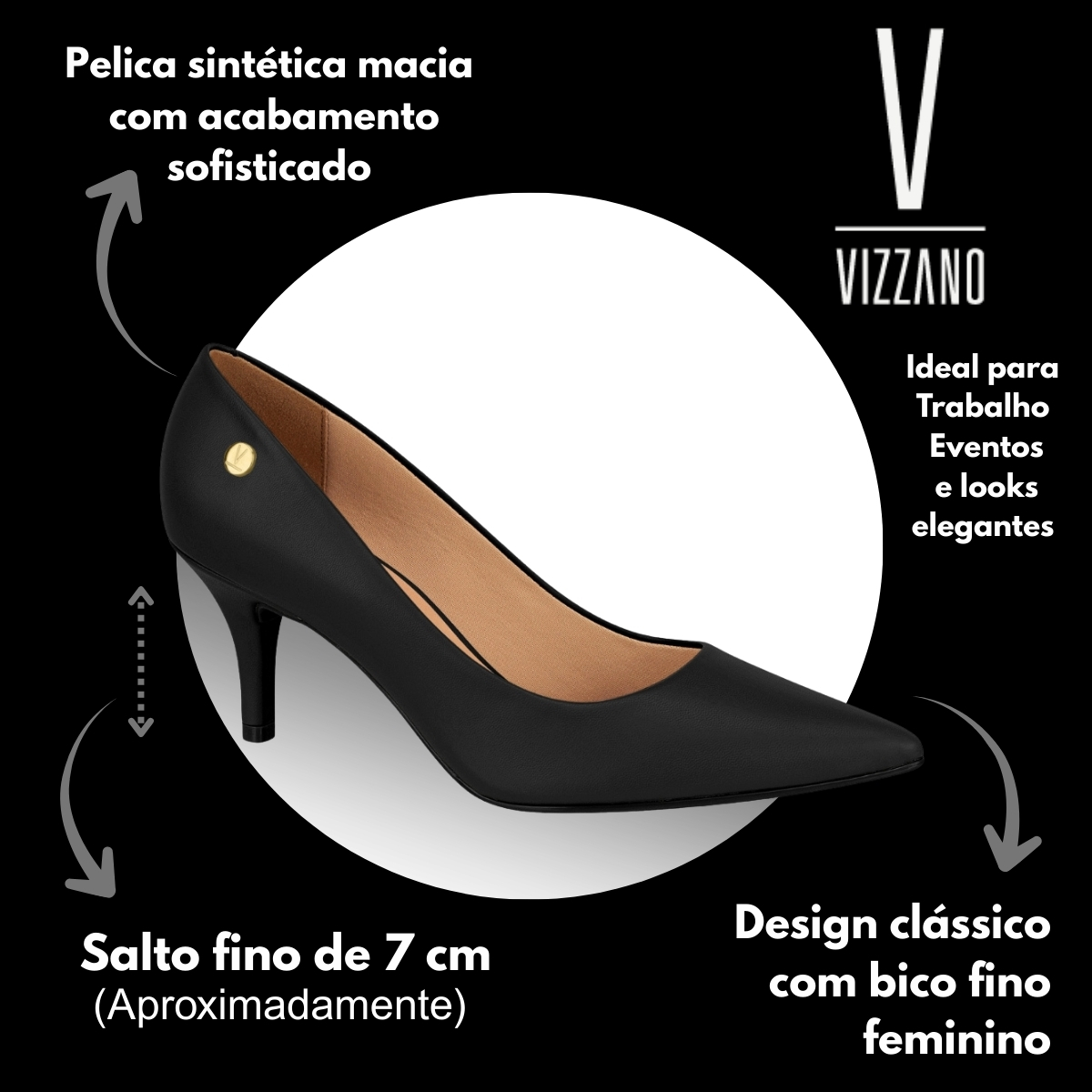 Ideal para o trabalho, eventos sociais e produções elegantes do dia a dia, o Scarpin Feminino 1185702 da Vizzano oferece sofisticação, conforto e versatilidade em um único modelo, com bico fino, salto de 7 cm e design clássico que valoriza qualquer look com elegância.