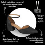 Confeccionado em pelica sintética preta de alta qualidade, o modelo apresenta toque macio, visual sofisticado e excelente durabilidade. Seu salto bloco médio proporciona maior estabilidade ao caminhar, garantindo conforto mesmo após longos períodos de uso, além de valorizar a silhueta com elegância.