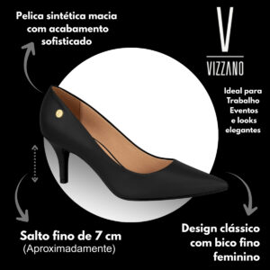 Itens inclusos na compra: Scarpin Feminino Vizzano 1220317, conforme anunciado, enviado na caixa original do fabricante.