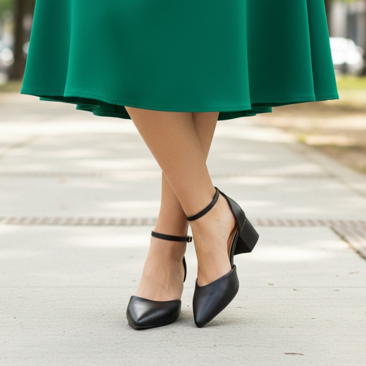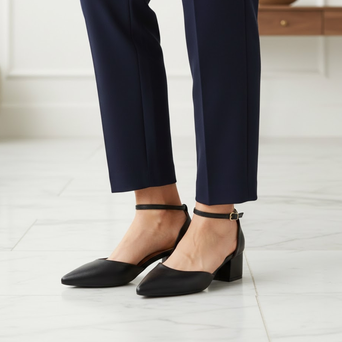 O grande diferencial fica por conta da pulseira removível no calcanhar, com múltiplos ajustes, que oferece segurança extra ao caminhar e permite variações no estilo do calçado. O bico fino adiciona um toque moderno e elegante, tornando este scarpin uma peça indispensável no guarda-roupa feminino.