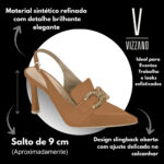 Confeccionado em material sintético de alta qualidade, oferece leveza, durabilidade e um acabamento refinado, ideal para uso diário ou ocasiões especiais. O formato slingback, com tira traseira aberta, garante ajuste delicado ao pé, proporcionando conforto e estilo ao mesmo tempo.
