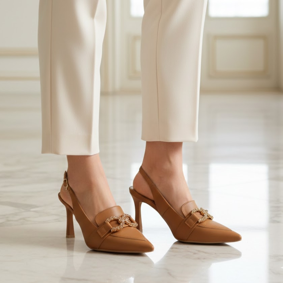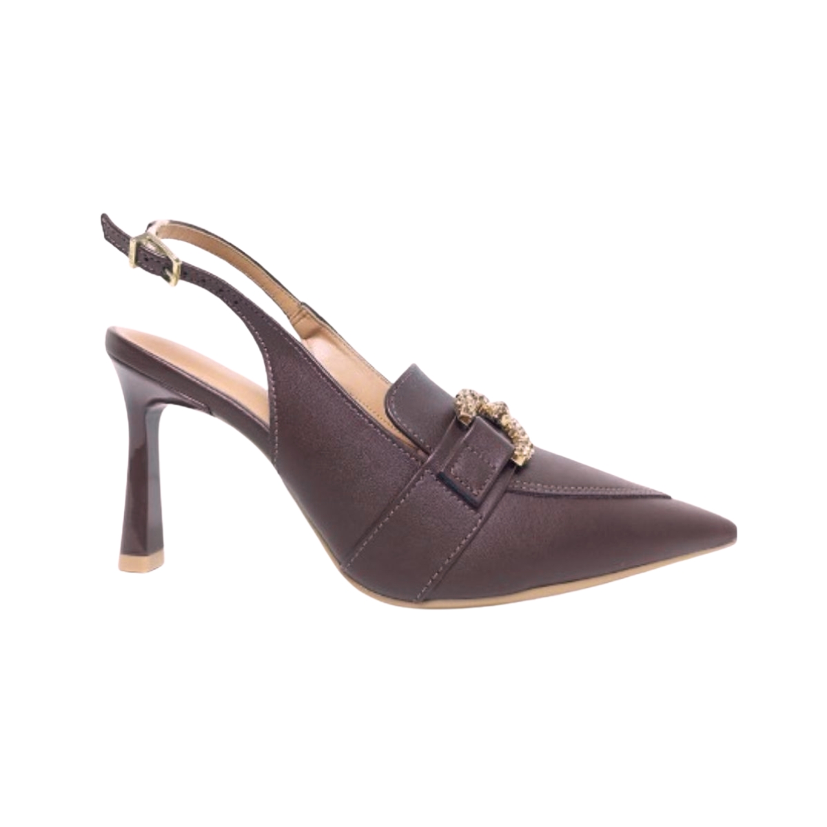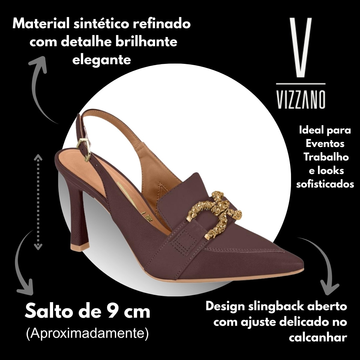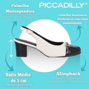 Confeccionado em material sintético de alta qualidade, oferece leveza, durabilidade e um acabamento refinado, ideal para uso diário ou ocasiões especiais. O formato slingback, com tira traseira aberta, garante ajuste delicado ao pé, proporcionando conforto e estilo ao mesmo tempo.