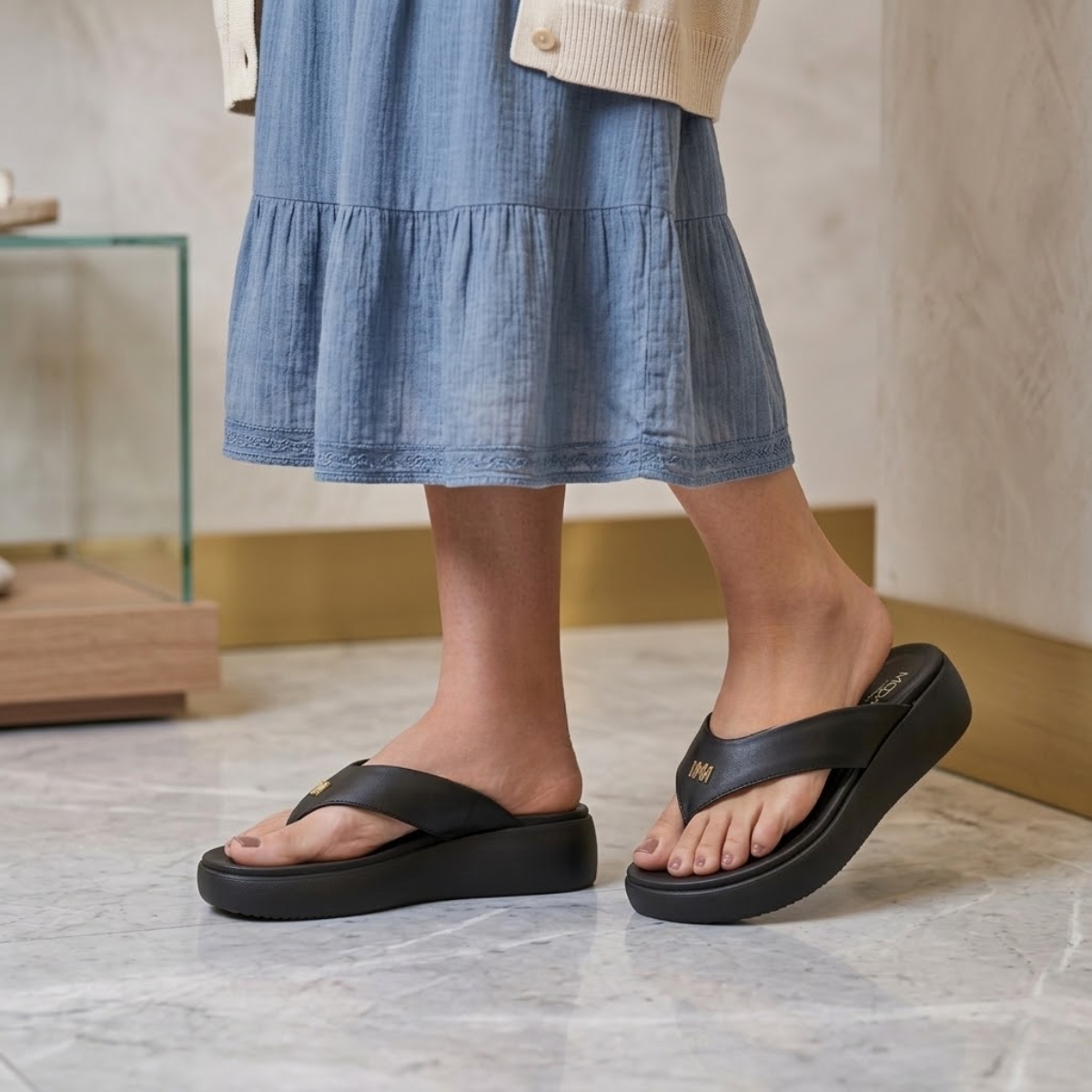 Altura aproximada do salto: 5 cm (Anabela)