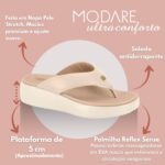 Ideal para o dia a dia e ocasiões casuais, o Tamanco Plataforma Anabela Modare 7189101 oferece conforto prolongado com palmilha em EVA ultramacio e esferas massageadoras, aliado a um design elegante com salto anabela de 5 cm e solado antiderrapante para mais estabilidade ao caminhar.