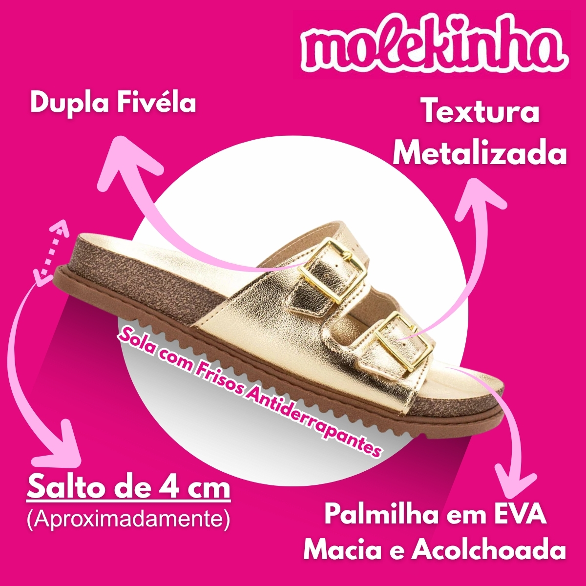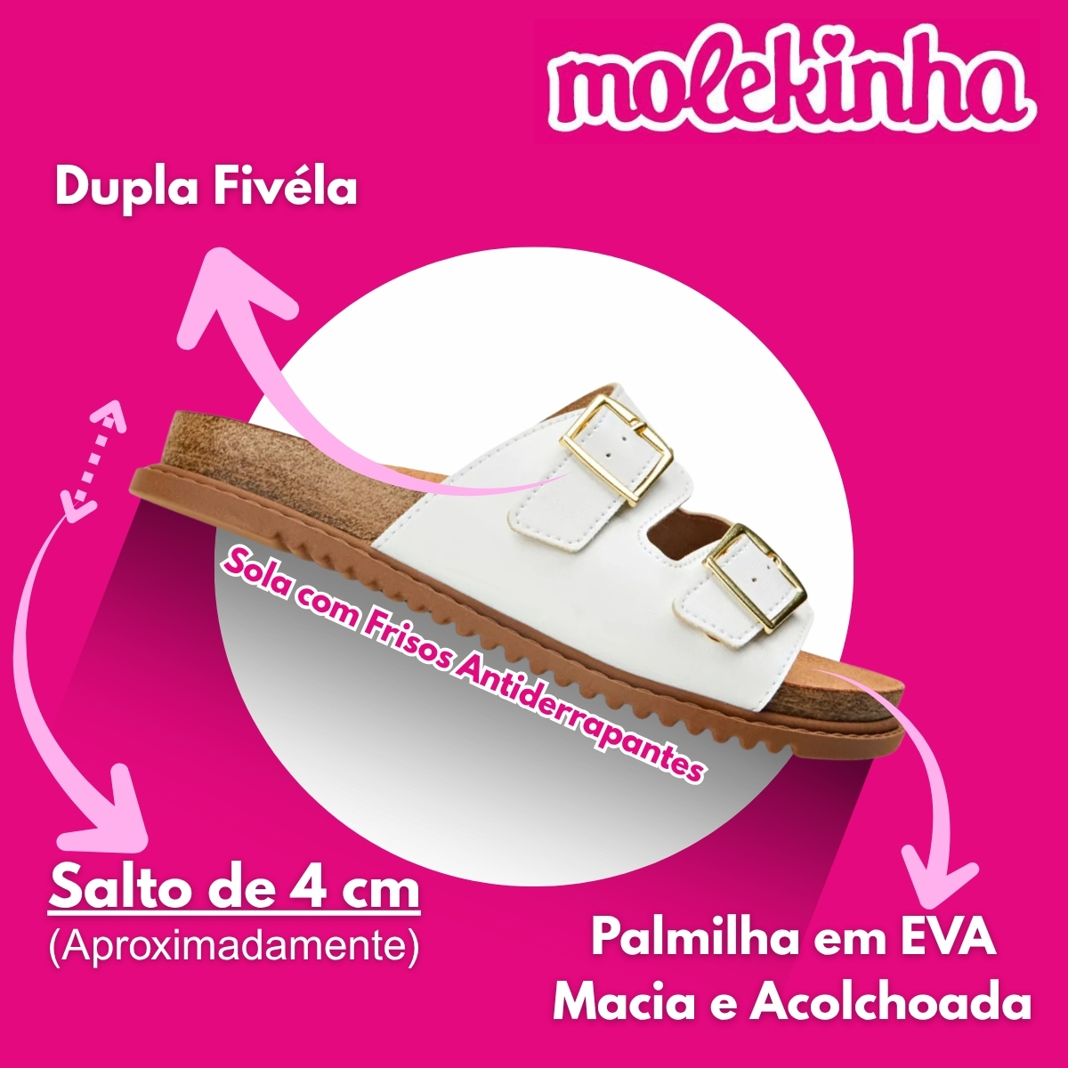 Itens inclusos na compra: Um Tamanco Infantil Molekinha Dupla Fivela 2357103, enviado na caixa original do fabricante.