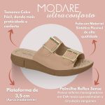 O Tamanco Modare Ultraconforto Reflex Sense 7142113 foi desenvolvido especialmente para mulheres que priorizam bem-estar, praticidade e suavidade ao caminhar. Seu cabedal em material sintético de alta qualidade possui tiras macias que proporcionam encaixe confortável e elegante no pé. A palmilha Reflex Sense, tecnologia exclusiva da Modare, garante absorção de impacto superior, controle de umidade e sensação de massagem suave a cada passo. O solado emborrachado antiderrapante aumenta a segurança durante o uso, enquanto o salto anabela de aproximadamente 3,5 cm oferece estabilidade e conforto ideal para quem sofre com dores no calcanhar ou busca mais suporte para o dia a dia. Um modelo perfeito para rotinas intensas, passeios e composições casuais que valorizam leveza e saúde.
